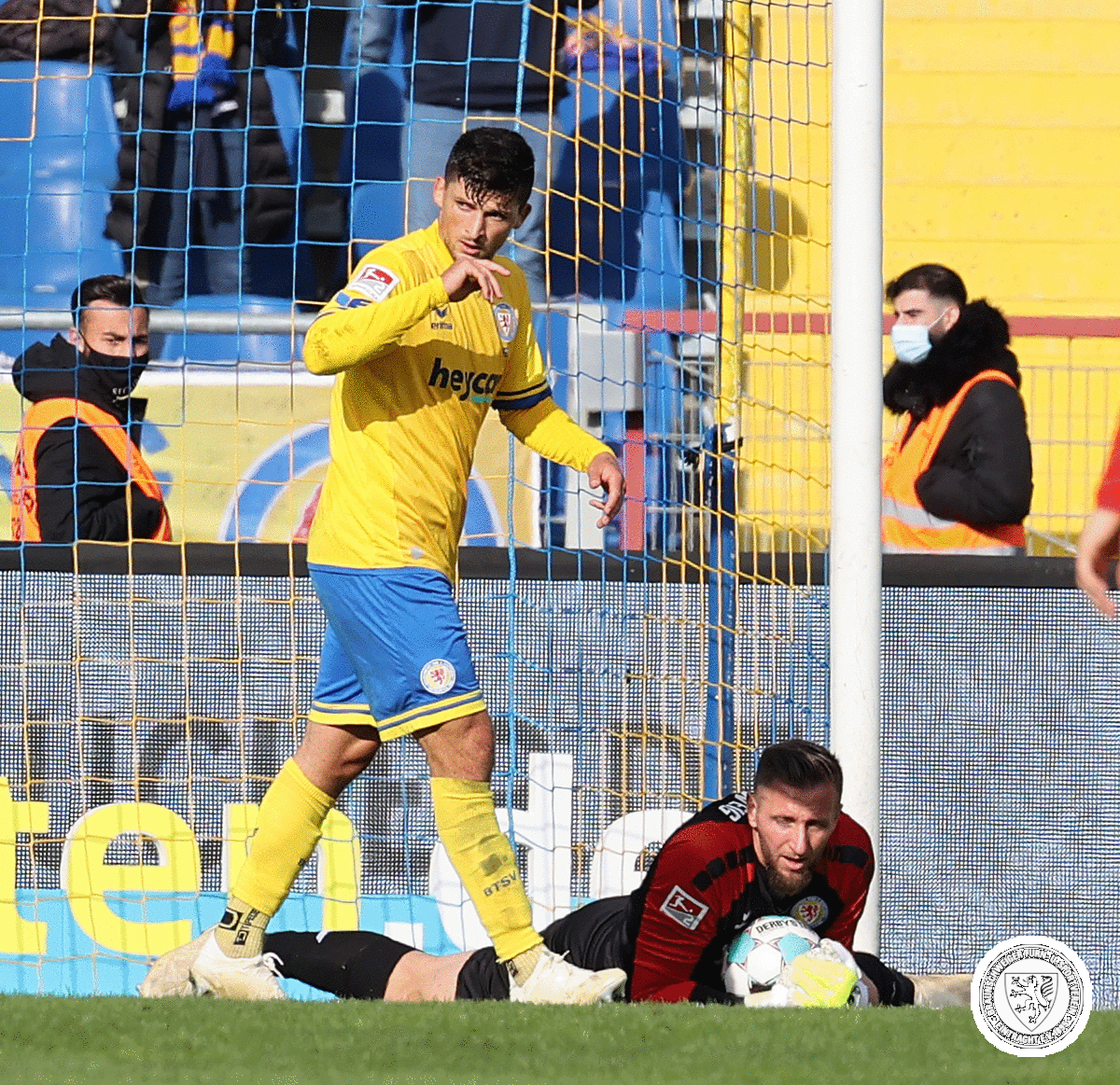 5. Minute: Die Löwen beginnen stark, doch aus dem Nichts gehen die Gäste in Führung. Simon Zoller versenkt eine Flanke aus kürzester Distanz im Kasten der Braunschweiger. Dornebusch ohne Chance.
