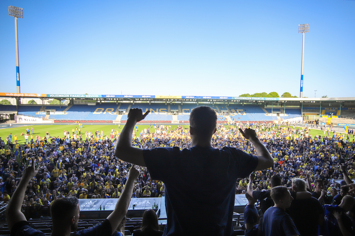 Am letzten Spieltag wurde in Braunschweig dann ein absolutes Fußballfest gefeiert. Die Viktoria, die die Löwen am vorigen Wochenende noch zum Aufstieg geschossen hatte, war nun an der Oker zu Gast. Beim Einlaufen wurden beide Teams beklatscht und vor der Partie schallte „Kölsche Jung“ von Brings aus den Lautsprechern des Tempels. Gemeinsam ließ man die Saison ausklingen. Dass am Ende der Partie ein 0:1 auf der Anzeigetafel stand, interessierte nach dem Schlusspfiff wirklich keinen mehr. Der Rasen war gefüllt mit Fans, die sich in den Armen lagen und auch dem Chef-Trainer Michael Schiele lauschten, der sich von der Haupttribüne aus nicht nur bei seinen Spielern und dem Trainer-Team bedankte, sondern auch das eine oder andere Liedchen schmetterte. 2. Liga, wir kommen! Die Braunschweiger sind wieder da!