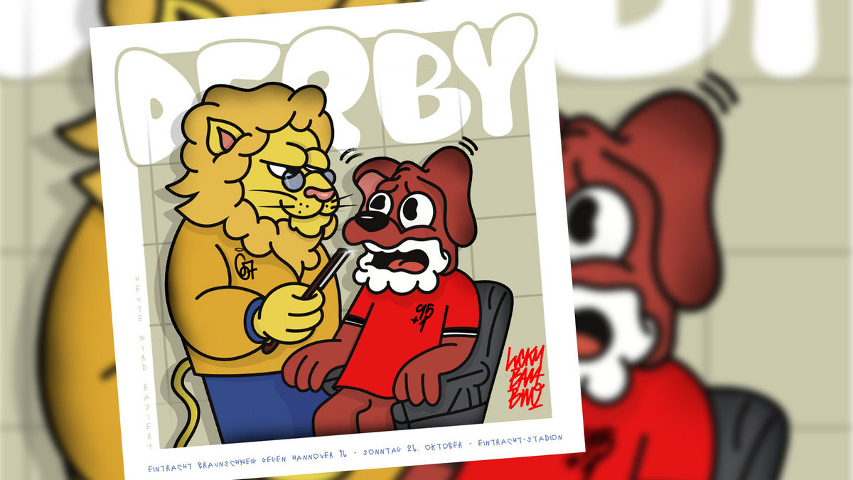 Nach „Hannover an der Leine“ in der Vorsaison haut Braunschweigs Künstler Lucky Bambino auch in dieser Saison zum Heimspielderby ein neues hochwertiges Werk raus.