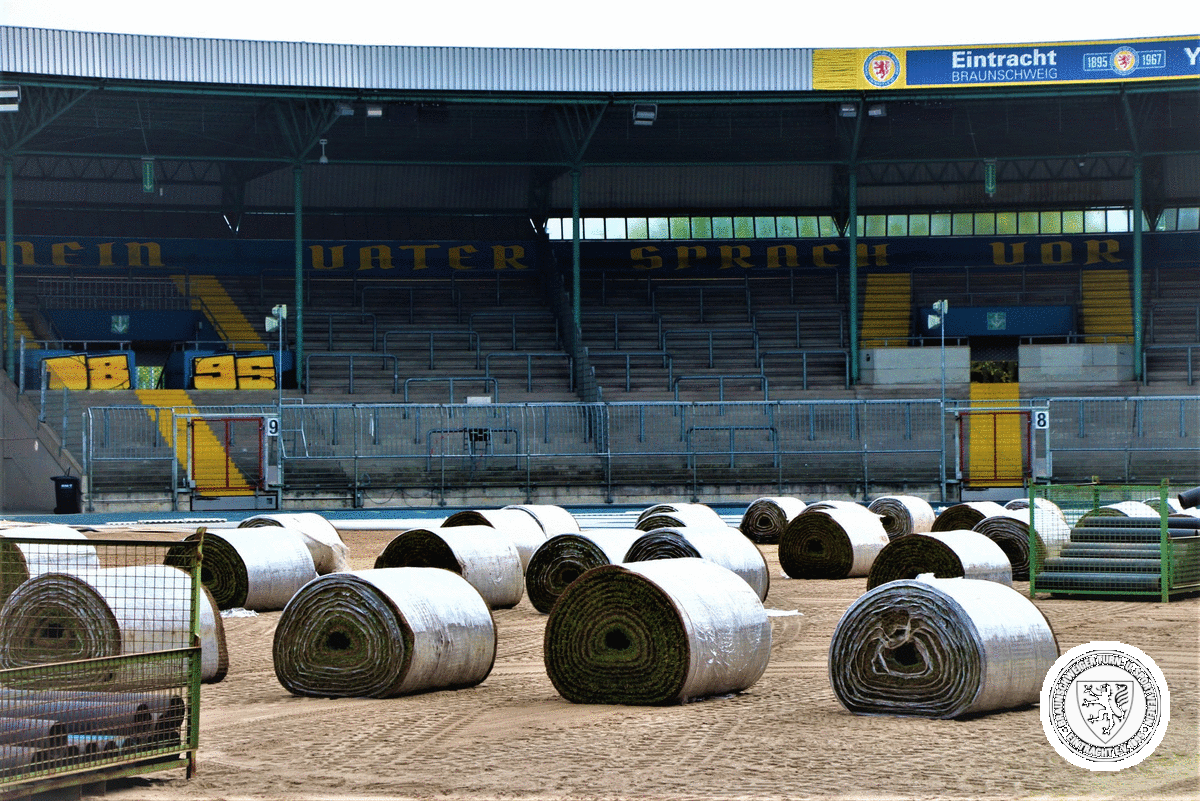 Nach vier Jahren und fünf Saisons wird nun zum Start der neuen Spielzeit 2021/2022 wieder frischer Rasen im EINTRACHT-STADION verlegt. Die neue Bepflanzung wird zum ersten Heimspiel am Sonntag gegen Viktoria Berlin erstmalig bespielt werden können.