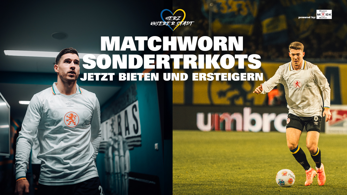 Versteigert werden die spielgetragenen Sondertrikots von Patrick Nkoa, Florian Flick, Leon Bell Bell, Faride Alidou, Lukas Frenkert, Anas Bakhat und Sidney Raebiger. Zusätzlich kommen die vorbereiteten Trikots von Fabio Kaufmann und Louis Breunig unter den Hammer.