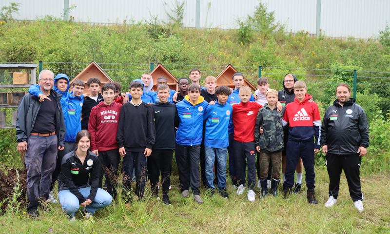 Nachwuchsteam baute Insektenhotels und pflegte den Entwässerungsgraben